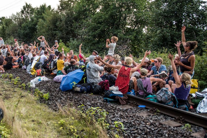 On Friday and Saturday, thousands of „Ende Gelände“ activists blocked the train tracks which supply Germany’ s dirtiest coal-fired power plant Neurath with coal. On Friday the tracks were occupied for nine hours. On Saturday the blockades were held for six hours. RWE had to reduce the capacities of the power plant for 20 hours. One group of activists also managed to enter the open-cast coal mine Garzweiler. The different „fingers“ of the mass action highlighted various aspects of the climate justice issue, such as workers’ struggles, mobility, agriculture and feminism, seeking to unite movements of the left.