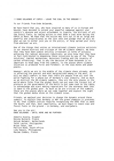 To our friends from Ende Gelaende,