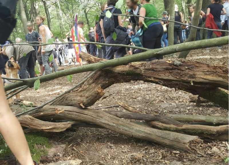 Lo que últimamente ha sucedido en el Hambacher Forst es casi imposible de aguantar. A pesar del accidente terrible en el bosque, la locura continúa. No sólo sentimos tristeza, sino también rabia: durante las últimas dos semanas tuvimos que ser testigxs de que la policía desalojara el bosque, destruyera casas en los árboles, los cortara y pusiera en riesgo a lxs activistas. Todo por orden del gobierno del estado federado y en colaboración con la RWE (una empresa del sector energético). La RWE hace todo lo posible para deforestar el resto del bosque de Hambach por el lignito. ¡Eso es un escándalo!