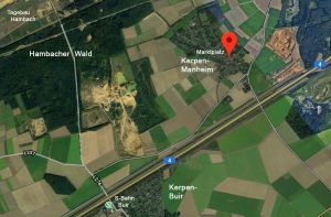 - von dort zum BUND-Widerstands-Acker, dann in den Restwald auf der nördlichen Seite der alten A4. Dort werden sicherlich die Rodungen beginnen, wenn RWE tatsächlich vom OVG Münster grünes Licht bekommt. Wir hoffen immer noch, dass es anders kommt.