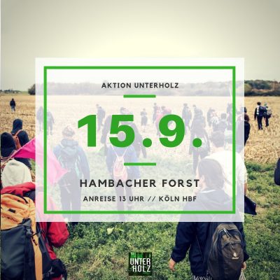 15. September 2018 Aktion Unterholz appelle à des actions de désobéissance civile de masse le 15 septembre 2018 dans la forêt de Hambach. Plus ...