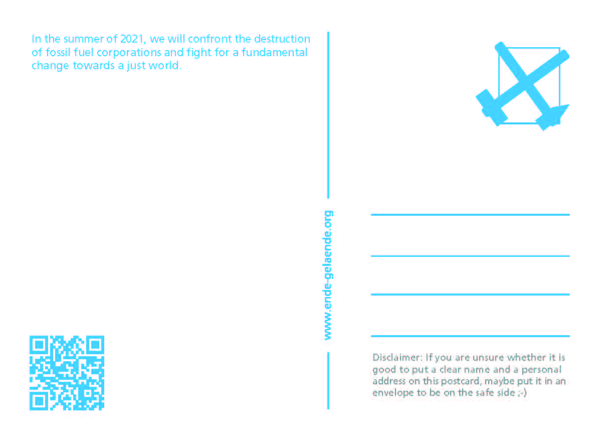 - Ende Gelände: IBAN: DE48 4306 0967 1120 8464 00, BIC: GENODEM1GLS