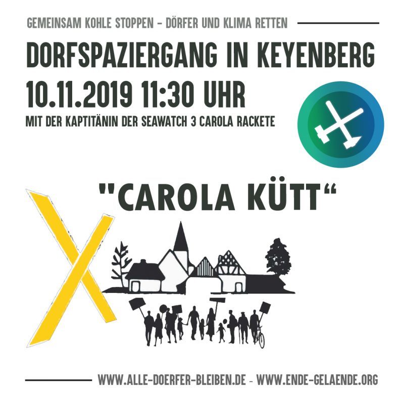Am Sonntag, den 10. November wird die Kapitänen Carola Rackete den Dorfspaziergang in Keyenberg bei Garzweiler besuchen. Um 11:30 h geht`s los. Wir freuen uns auf euch & auf Carola!