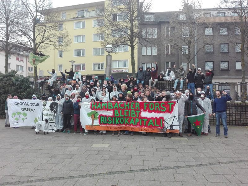Von Hamburg bis Genua und von Bristol bis Wien: Zum Aktionstag für gefangengenommene Aktivist*innen aus dem Hambacher Forst sind am Samstag, 3. Febraur, in zahlreichen Städten in Europa Menschen aus der Klimagerechtigkeitsbewegung auf die Straße gegangen, um sich mit den Waldbewohner*innen zu solidarisieren. Neun von ihnen waren am 22.01.2018 in Untersuchungshaft genommen worden, nachdem die Polizei mit einem Großaufgebot versucht hatte, Barrikaden im Hambacher Forst zu räumen.