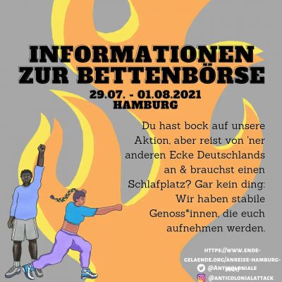27. Juli 2021 Pressemitteilung vom 27. Juli 2021 ++ Tausende werden am Wochende zu Ende Gelände Protest gegen ein Fracking-Gas-Terminal in Brunsbüttel erwartet. Migrantisches und Schwarzes Bündnis will gleichzeitig imperialistische Institutionen in Hamburg blockieren. Podium am Donnerstag in Hamburg. Weiterlesen ...